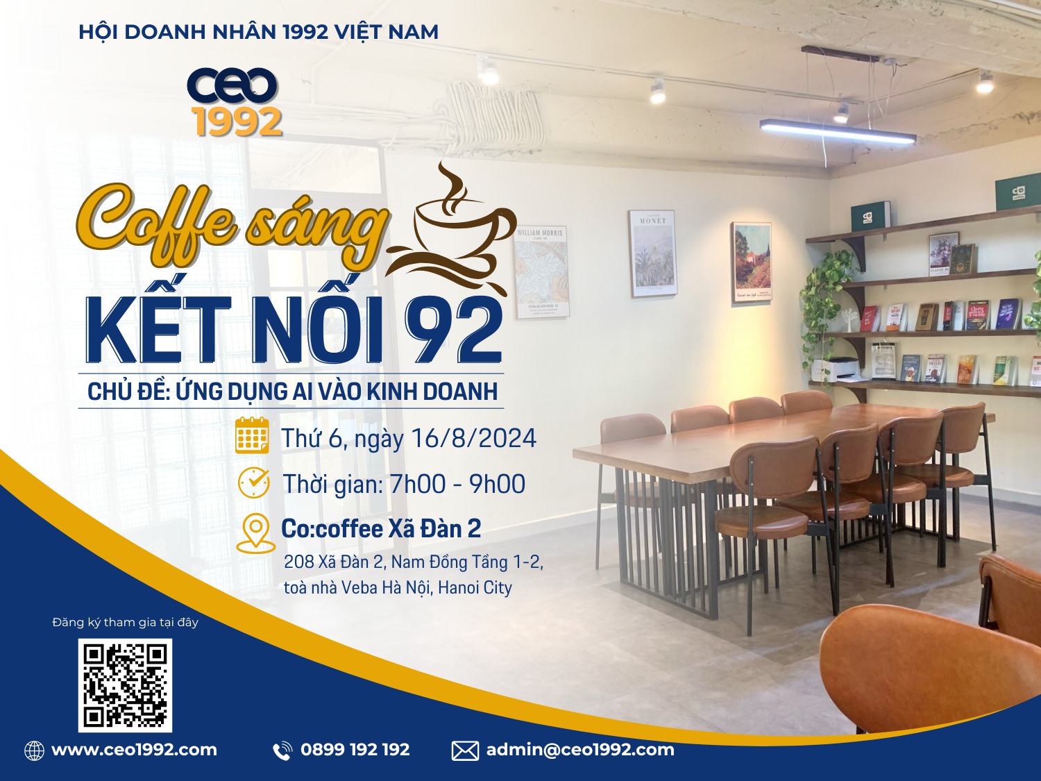 Hãy đến và trải nghiệm buổi sáng thú vị bên ly cà phê, cùng những Đồng niên 92 kết nối, chia sẻ và học hỏi.